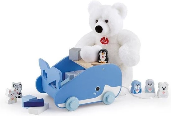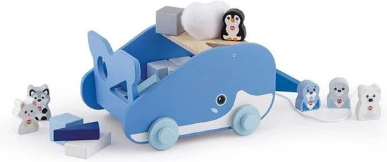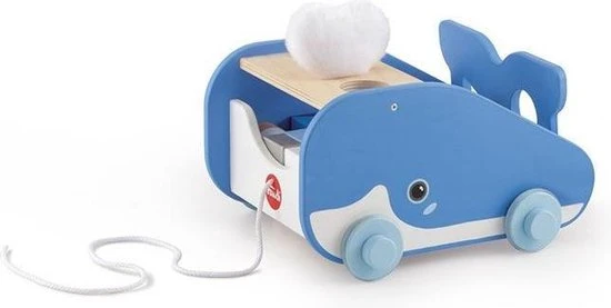 Neem de walvis overal mee naartoe. Leer vormen herkennen, stapelen en lekker spelen met deze leuke blokkenkar.