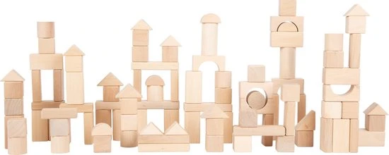 Lekker bouwen! Dat kan met deze zak met houten bouwstenen. Bouw er op los, er zitten wel 100 grote bouwstenen in de zak. Zo zijn de bouwstenen ook eenvoudig mee te nemen op reis!