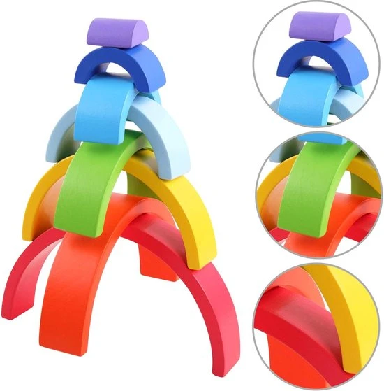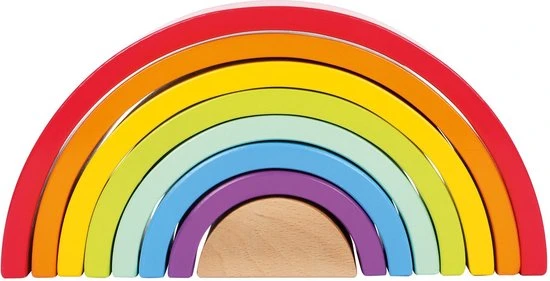 Deze 7 fel gekleurde bogen gemaakt van hout zijn een nieuwe speelse uitdaging voor de fijne motoriek van de handen! Vorm- en kleurherkenning zal met plezier worden getraind. Dit is de large versie van de bogen.