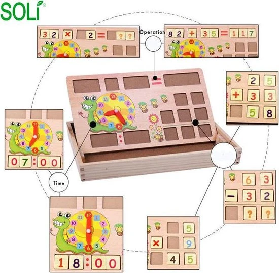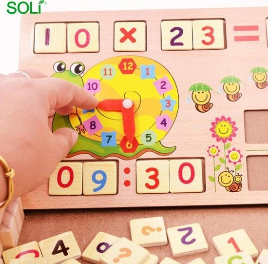 Educatief houten puzzel met krijtbord achterop. Handig om het klok kijken, rekenen en tellen te oefenen.