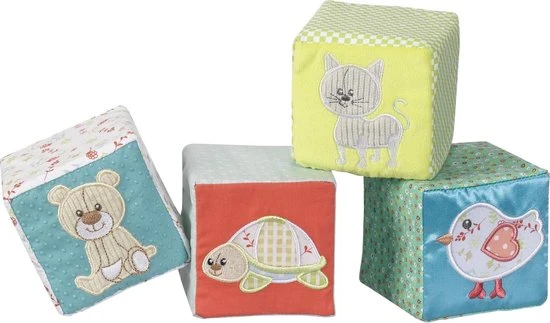 Stoffen blokken boordevol activiteiten om alle zintuigen van baby te stimuleren! Allerlei activiteiten om te ontdekken: