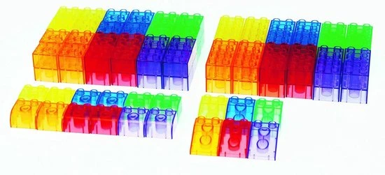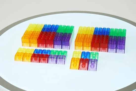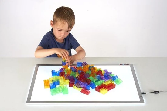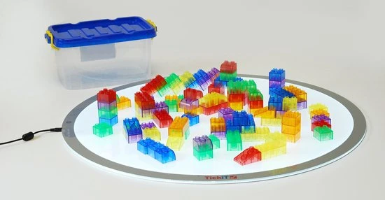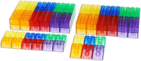 Doorzichtige plastic bouwblokken, ideaal voor het verbeteren van fijne motorische vaardigheden door fantasierijk spel. Kleurrijke constructies lijken nog opvallender wanneer ze op een lichtpaneel worden gebouwd. Komt met een handige bewaarbox.
