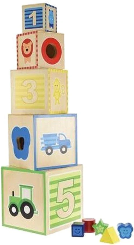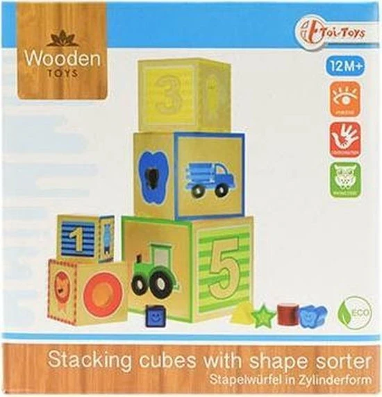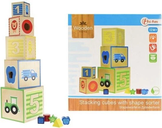 De houten stapeltoren van Toi-Toys is een leerzame uitdaging voor jouw kindje. Probeer de blokken te stapelen zonder dat de toren omvalt. In de blokken zitten ook gaten waar de vormpjes door heen passen, lukt het jouw om de goede vorm bij de juiste uitsparing te vinden?