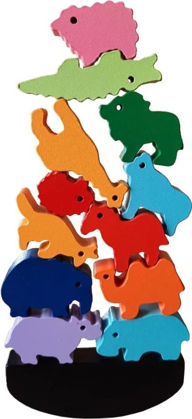 1, 2, 3… Stapelen maar! Balanceer en bouw een zo hoog mogelijke toren van de houten jungledieren. Lukt het jou om alle diertjes op te stapelen? Een echte uitdaging voor jong en oud! Gelukkig zijn de houten jungledieren ook super leuk voor fantasiespel.