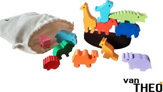 De dieren zijn gemaakt van hout en hebben verschillende afmetingen, variërend van 3 tot 7 centimeter. Het zwarte balanceerblokje is ongeveer 10 bij 3,5 centimeter. De set is geschikt voor kinderen vanaf 3 jaar. Het spelletje wordt geleverd in een handig zakje, zodat je het gemakkelijk kan meenemen!