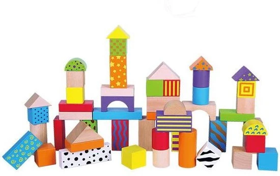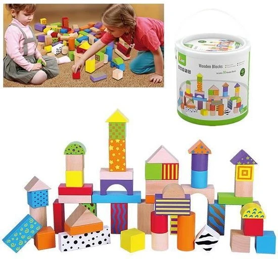 Vigatoys Blokken – Kleur Met Print – In Ton – 50dlg.