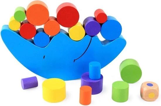 Dit balans- stapelspel met dobbelsteen traint de fijne motoriek. Gooi met de dobbelsteen een kleur. Plaats een figuur refererend aan de kleur van de dobbelsteen op de maan. Wees voorzichtig … en blijf in evenwicht anders vallen alle blokken in de ruimte!.