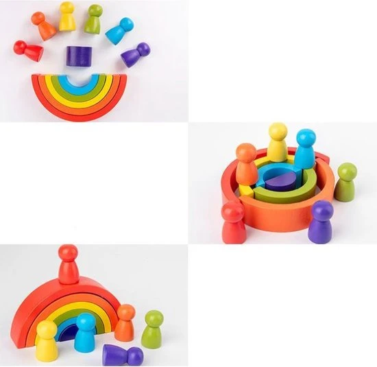 Ontdek met de ringen/bogen van Zacia Houten Regenboog nieuwe vormen en figuren. Je kunt met de kleurrijke bogen schommelen, bouwen, balanceren of stapelen. Gebruik ze bijvoorbeeld in combinatie met een treinbaan (de bogen kunnen dan bijvoorbeeld als een weg dienen), of maak van de ringen een mooi huisje voor je speelpoppetjes. De mogelijkheden zijn eindeloos met de bogen en pionnen.